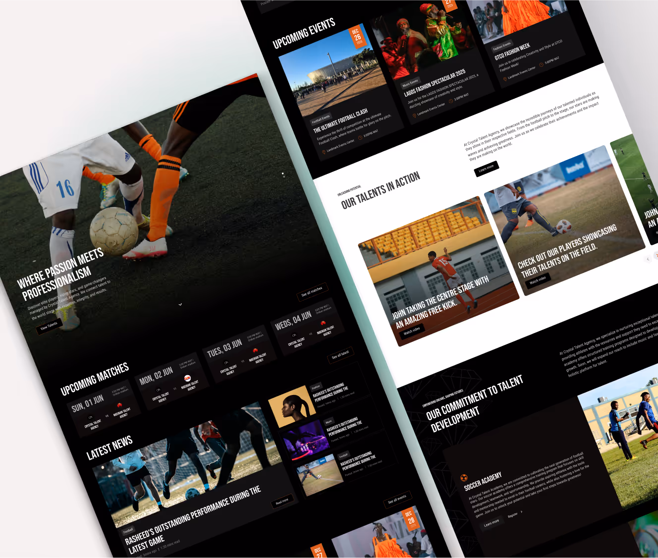 Crystal Talent Agency is an innovative and dynamic talent management firm that is rapidly establishing itself as a leader in the industry. With a strong focus on nurturing and propelling the careers of elite athletes, models, and artists, the agency employs a comprehensive, multi-faceted strategy that sets it apart from traditional talent agencies. At the heart of their operations is a rigorous soccer academy designed to develop young athletes' skills and prepare them for professional careers in sports. This academy serves as a foundational pillar, allowing the agency to identify and manage exceptional football talent from an early stage.
